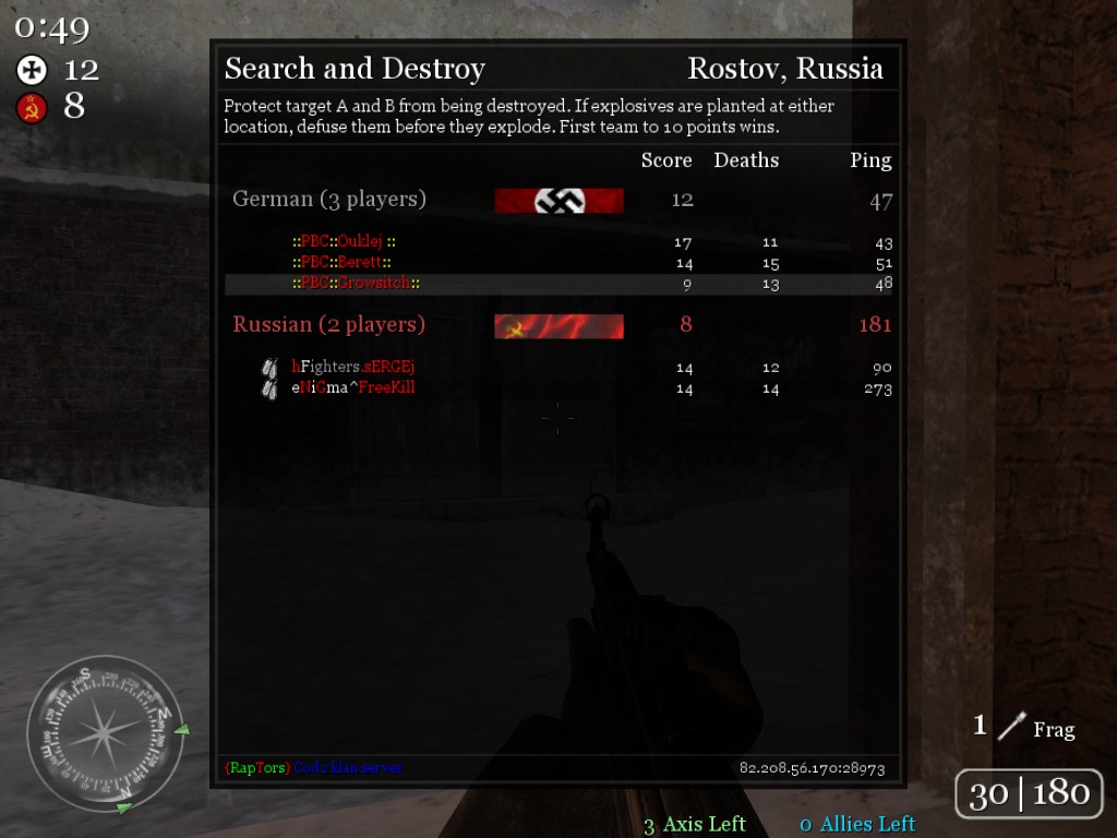 | 29.10 | Cease-fire | 31:09 (15:5/16:4) | SD 4vs4 |